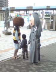 Hたちは濡れながら水木しげるロードを歩きました。