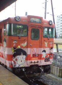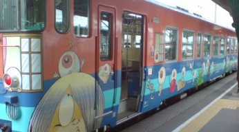 今回の旅の第二の目的は、この鬼太郎仕様の電車に乗ること