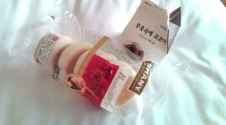 コンビニ(ファミマ)で売ってたお菓子とチョコミルク。